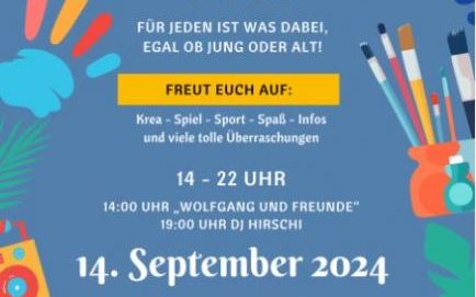 Nach fünf erfolgreichen Veranstaltungen erwartet euch am Samstag, den 14. September, ein unvergesslicher Festtag! Der kleine Umzug startet um 13:00 Uhr an der evangelischen Kirche St. Laurentius und führt zum Festplatz auf dem Schremschesportplatz. Bürger und Gruppen, die sich beteiligen möchten, sind herzlich eingeladen, sich um 12:30 Uhr an der Kirche einzufinden.