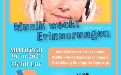 Erfahrt mehr über ein innovatives App-basiertes Musikprojekt für die häusliche Pflege und lasst Euch von Entlastungsangeboten wie „Offenes Ohr“ inspirieren. Die Veranstaltung richtet sich an pflegende Angehörige, Fachkräfte und alle Interessierten. Organisiert von der Selbsthilfegruppe Demenz Rudolstadt.