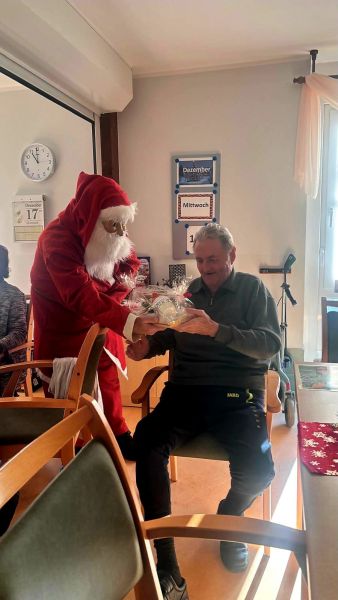Natürlich durfte auch der Weihnachtsmann nicht fehlen, der jedem Gast eine kleine Aufmerksamkeit überbrachte. Ein absolutes Highlight folgte zum Mittagessen: Unsere Mitarbeitenden servierten ein selbstgekochtes Weihnachtswunschessen mit Klößen, Rouladen und Rotkraut – zum Nachtisch ein leckeres Tiramisu. Es wurde genossen und ausgiebig geschlemmt.