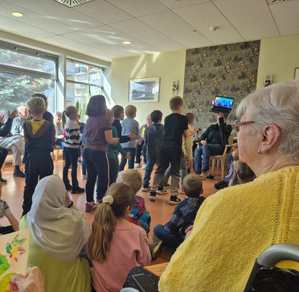 Im Oktober war die 2. Klasse der Friedrich-Adolf-Richter-Schule zu Besuch bei den Bewohner/innen des AWO-Seniorenheims in Rudolstadt.