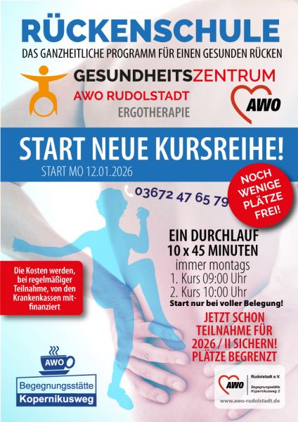 Ab sofort sind Anmeldungen für die beliebten Rückenschulkurse in der AWO Begegnungsstätte Kopernikusweg möglich! Die Kurse finden immer montags statt und bieten eine ideale Gelegenheit, etwas für die Gesundheit des Rückens zu tun.