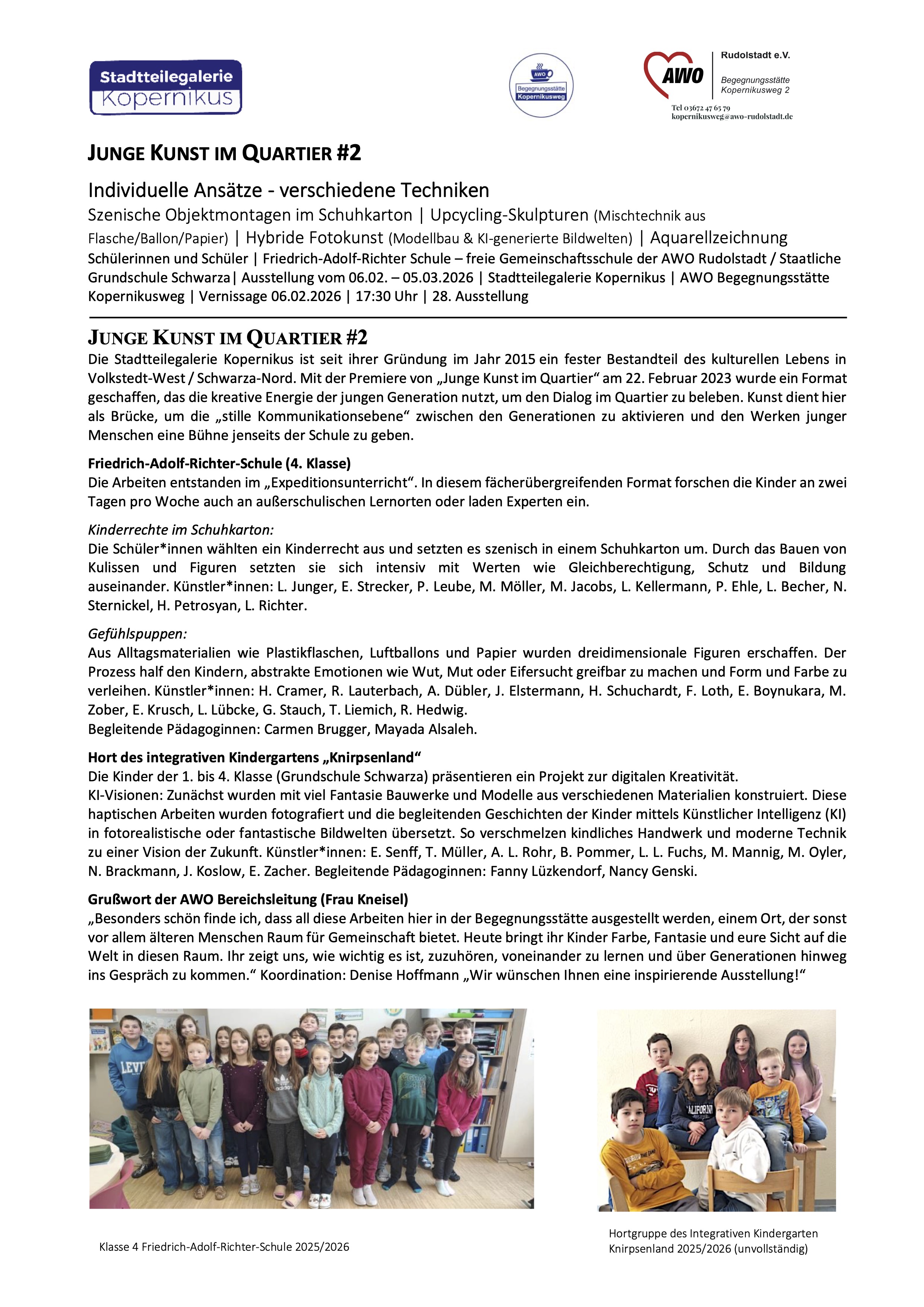 Mit Werken von Schüler*innen de Friedrich-Adolf-Richter Gemeinschaftsschule und der Hortgruppe des Kindergartens Knirpsenland