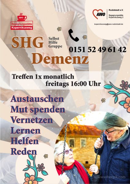 SHG Demenz für Angehörige, Interessierte und Menschen mit leichter und ohne Demenz
