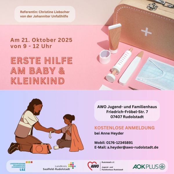 In unserem Kurs mit Christine Liebscher von der Johanniter-Unfall-Hilfe erfahrt ihr, wie ihr in Notfällen richtig handelt. Die Veranstaltung ist kostenfrei und beinhaltet bei Bedarf auch eine Kinderbetreuung.