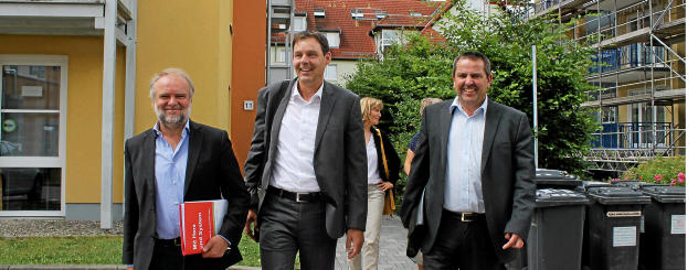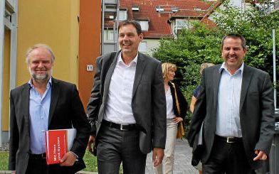 AWO-Geschäftsführer Hans-Heinrich Tschoepke (v.l.), der Leiter der Arbeitsagentur Jena Holger Bock und der Leiter des Saalfelder Jobcenters Uwe-Jens Kremlitschka gestern in Rudolstadt. Foto: Heike Enzian