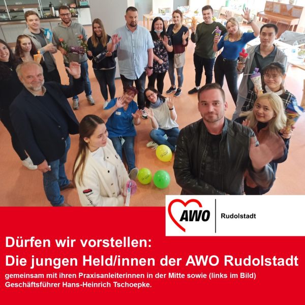 Und genauso freuen sich alle Bereiche auf die "Neulinge". 14 junge Held/innen beginnen in diesem Jahr bei uns ihre Ausbildung zur Pflegefachkraft oder zum Altenpflegerhelfer/in. Parallel dazu starten drei Studierende in ihr duales Studium an der IBA Erfurt bzw. der DHGE - mit der AWO Rudolstadt als Praxispartner.