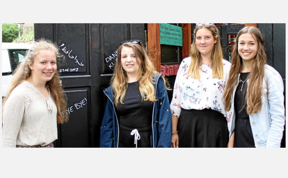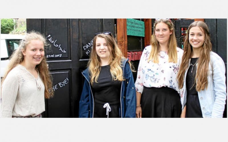 Lea, Sina, Arwen und Celine (von links) aus der Friedrich-Adolf-Richter-Schule beim Verlassen des Sprachlabyrinths in Rudolstadt. Foto: Heike Enzian