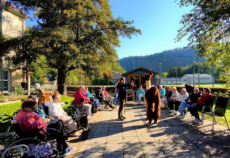 Die Gäste der AWO Seniorenbetreuung Sitzendorf und der AWO Tagespflege Rudolstadt durften sich vergangene Woche über einen ganz besonderen Besuch freuen: Die Alpakas und Lamas vom Roten Berg in Unterwellenborn kamen mit ihrer Besitzerin Michelle Dinter vorbei.