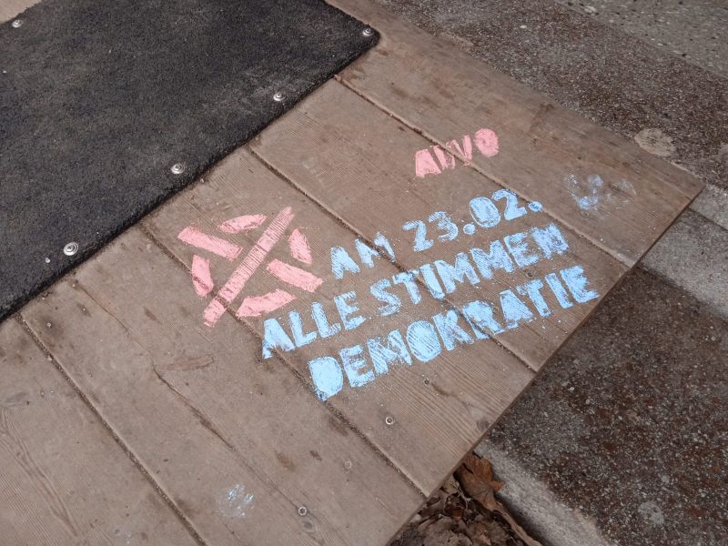 Mit unserer AWO-Botschaft, kreativ auf Wände und Böden gesprüht, gemalt und gepinselt, möchten wir auf die Bundestagswahl am 23.02.2025 aufmerksam machen. Nutzt euer Wahlrecht – jede Stimme zählt!