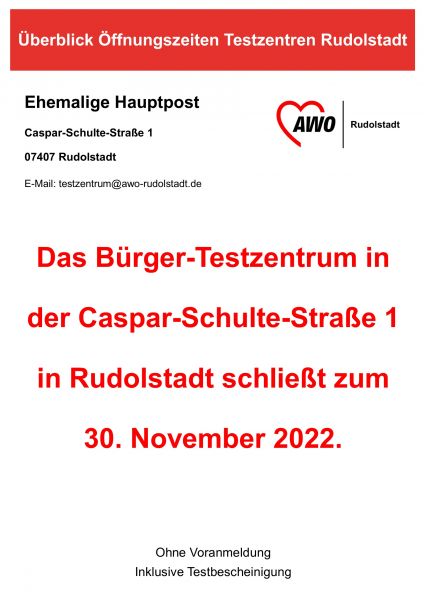 Das Bürger-Testzentrum in der ehemaligen Hauptpost schließt zum 30. November 2022.