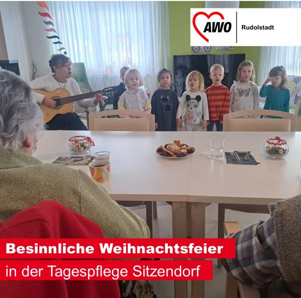 Auch in diesem Jahr fand wieder für die Tagespflegegäste die Weihnachtsfeier in der AWO Tagespflege Sitzendorf statt. Überrascht wurden die Gäste dabei von den Kindern des AWO Kindergartens „Weltentdecker“. Gemeinsam wurde sich mit fröhlichen Weihnachtsliedern auf die Weihnachtszeit eingestimmt. Natürlich schaute auch der Weihnachtsmann vorbei und überbrachte Groß und Klein eine Aufmerksamkeit.
