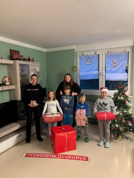 Am 23.12.2024 wurden bei einer gemütlichen Runde mit Kaffee und Kuchen die Geschenke überreicht. Die Freude war riesig! Von Fußbällen bis hin zu Markierungshütchen – die Kinder waren begeistert und können es kaum erwarten, die Sachen auszuprobieren.