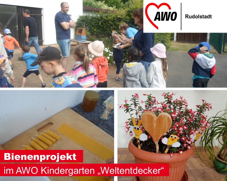 Im AWO Kindergarten „Weltentdecker“ in Sitzendorf, haben die Kinder und Erzieher das Weltentdeckerlied komponiert. Darin tauchen viele Fragen auf die unsere Kinder beschäftigen. Eine Frage ist: „Wie kommt der Honig in die Wabe rein?“