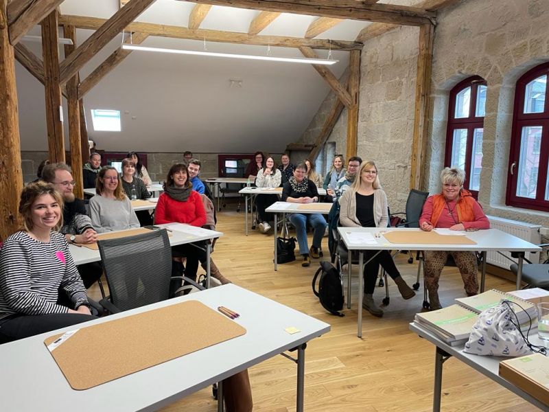 Das Team des AWO Kindergartens Feste Burg durfte sich am Montag anlässlich ihres Bildungstages mit dem Bauspiel als Kreativer und bildender Prozess beschäftigen. Durch den Tag führte uns Prof. Dr. Rißmann von der FH Erfurt und Ines Schroth, Betriebsleiterin der Ankerstein Manufaktur. Anhand der Ankergaben 1-3 der von ihnen entwickelten Education Reihe durfte unser Team sich zum einen vielfältig selbst ausprobieren: ordnen, einordnen, bauen mit Anleitung, freies Bauen, etc. Zudem fiel der Fokus auf die Bildungsbegleitung innerhalb der Bauphase durch die pädagogischen Fachkräfte im Kindergartenalltag. Eine Führung durch die Manufaktur mit einem individuell gepressten Stein und einem kleinen X-Manni Stapelwettbewerb rundete das Thema des Tages ab. Wir bedanken uns für die tolle Organisation!