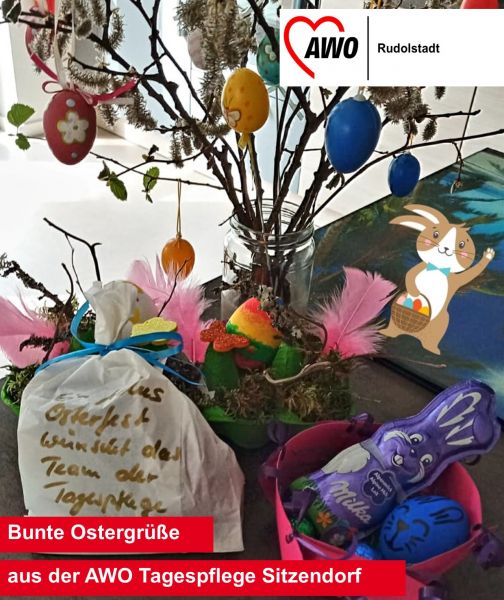 „Die AWO Tagespflege Sitzendorf wünscht ihren Tagespflegegästen und deren Angehörigen sowie den Bewohnerinnen und Bewohnern aus dem barrierefreien Wohnen ein schönes Osterfest.“