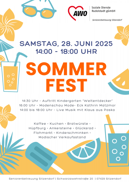 Am Samstag, den 28. Juni 2025 ist es wieder soweit: Wir feiern gemeinsam unser großes Sommerfest bei der Seniorenbetreuung Sitzendorf!