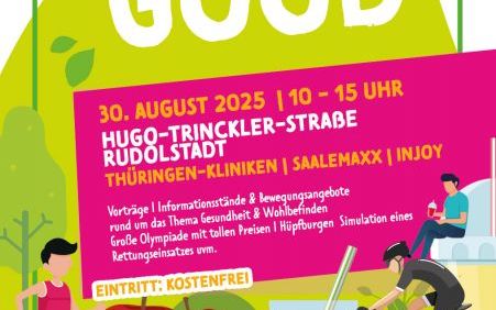 Aber auch darüber hinaus ist für die ganze Familie viel geboten: Sportliche Wettbewerbe, Mini-Olympiade, Gesundheitsvorträge und ein vielfältiges Rahmenprogramm sorgen für einen rundum gelungenen Tag. Veranstaltet wird das Gesundheitsfest durch das Gesundheitsamt des Landkreises in Kooperation mit den Thüringen-Kliniken, dem DRK, Injoy und dem Saalemaxx.