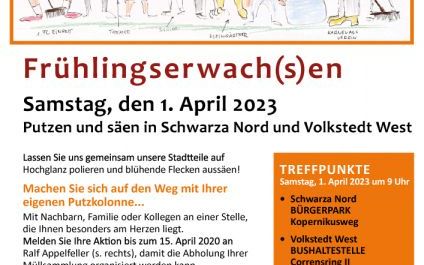 Weiterführung der traditionellen Frühjahresputzaktion der Initiative „Rudolstadt blüht auf“ nach dreijähriger Pause am Samstag, den 01. April 2023 ab 09:00 Uhr in den Rudolstädter Stadtteilen Volkstedt-West und Schwarza Nord.