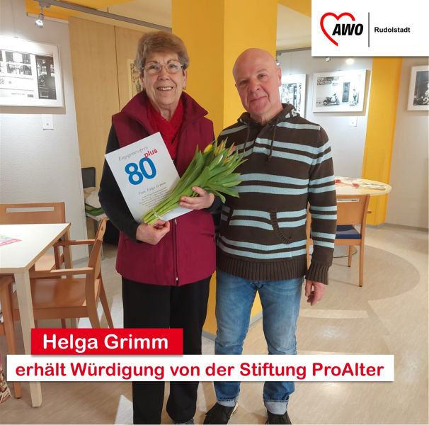 Helga Grimm erhält Würdigung von der Stiftung ProAlter für ihr außergewöhnliches Engagement im hohen Lebensalter.