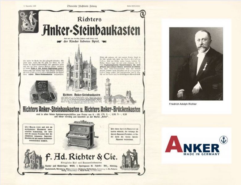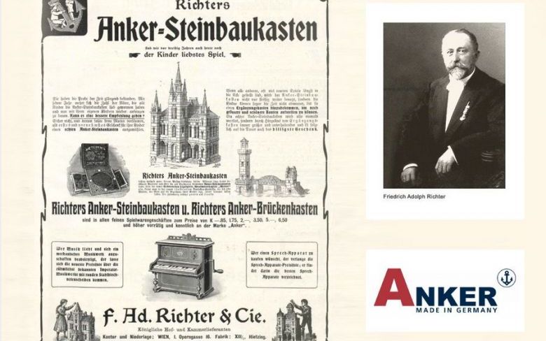 12. Mai 2021 – 175 Jahre wäre er heute alt, Friedrich Adolf Richter, der Erfinder der Ankersteine. Das Rezept zur Herstellung der Bausteine erwarb Richter von den Gebrüdern Lilienthal. Er ließ es patentieren und entwickelte daraus das erste Systemspielzeug der Welt. Damit wurde er Hoflieferant der Königshäuser und hatte schnell Niederlassungen in Wien, Amsterdam, St. Petersburg und New York.