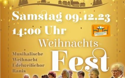 Feiern Sie mit uns das musikalische Weihnachtsfest in der AWO Begegnungsstätte Kopernikusweg! Am Samstag, den 9. Dezember 2023, ab 14:00 Uhr, lädt unsere Begegnungsstätte herzlich ein, ein zauberhaftes „Musikalisches Weihnachtsfest“ zu erleben. Der Edelweißchor aus Ranis unter der Leitung von Klaus Hollmann wird für ein mitreißendes musikalisches Programm sorgen. Tauchen Sie ein in die festliche Atmosphäre unserer geschmückten Räumlichkeiten und genießen Sie die erstklassige Versorgung durch unser bewährtes Team. Freuen Sie sich auf ein unvergessliches Fest voller Musik und besinnlicher Momente!