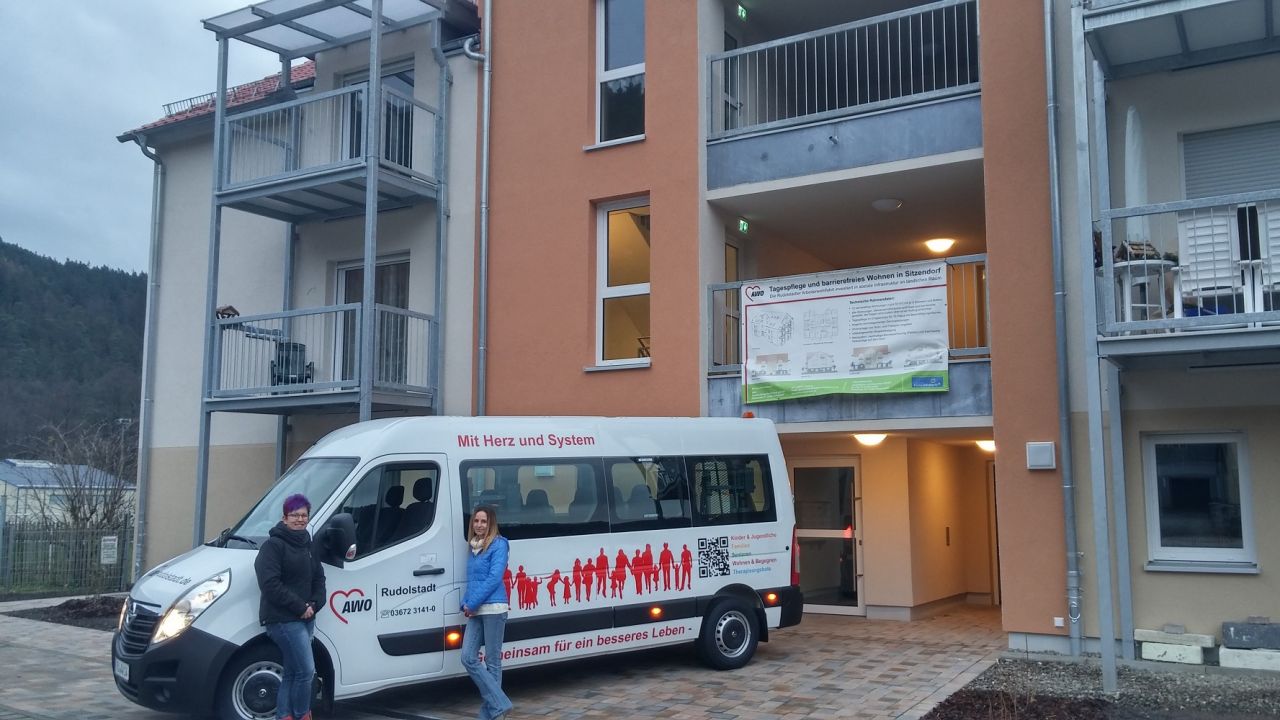 Darüber befindet sich das barrierefreie Wohnen, bestehend aus zwölf altersgerechten Wohneinheiten mit je zwei Zimmern und einem Balkon. Alle Gemeinschaftsräume, Flure und Wohnungen sind barrierefrei gestaltet, ein Aufzug ist vorhanden. Im Juli 2016 wurde der Grundstein für das vom Architekturbüro Rainer Lindenmann aus Rudolstadt geplante Gebäude gelegt, gefolgt vom nächsten Meilenstein im Bauprozess, dem Richtfest im November. Der Bau wurde jetzt plangemäß fertiggestellt. „Auch wenn die Kapazität bei weitem noch nicht ausreicht, ist es für Sitzendorf ein Schritt in die richtige Richtung, unseren Senioren ein altersgerechtes Wohnen zu ermöglichen. Wir als Gemeinde sind froh, dass die AWO unseren Vorschlag, ein Stück vom Sportplatzgelände dazuzukaufen, um eine schöne Gartenanlage zu errichten, aufgegriffen hat“, sagte Sitzendorfs Bürgermeister Martin Friedrich (CDU).