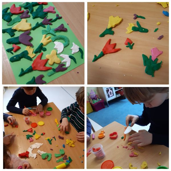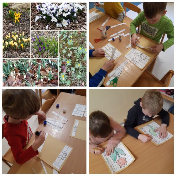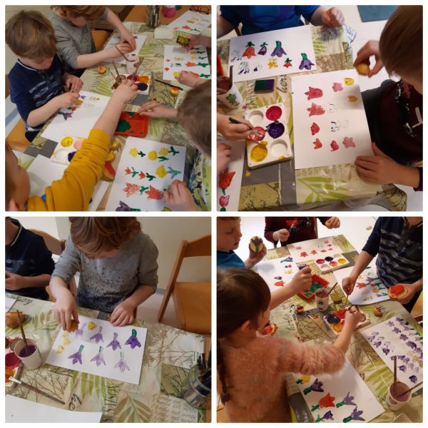 Im Kindergarten "Feste Burg" wurden die Frühblüher nach drinnen geholt, denn bunte Blumen lassen sich auch super mit Papier, Knete und Kartoffeldruck nachbasteln.