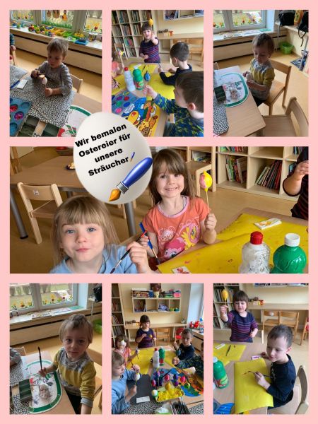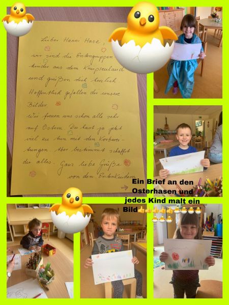 Im Integrativen Kindergarten "Knirpsenland" wurde der Osterhase mit angemalten Eiern und bunten Bildern empfangen.