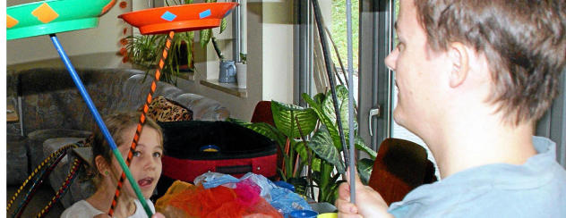 Aber das muss kein Nachteil sein. Für die Kinder und Jugendlichen, die sich die Frage stellen, was kann ich in den Ferien unternehmen, bietet das Jugend- und Familienhaus der Arbeiterwohlfahrt (AWO) in Rudolstadt derzeit eine Ferienfreizeit mit interessanten und abwechslungsreichen Aktionen an. Momentan zeigen die Mitarbeiter des Hauses, Vera Wuckel und Michael Baldrich, einer 16-köpfigen Rasselbande im Alter von sechs bis 14 Jahren, dass jeder Jonglieren lernen kann. Die Akteure haben sichtlich ebenso viel Spaß wie die Zuschauenden. Luise (7) gelingt das Kunststück, zwei Teller gleichzeitig in Bewegung zu halten. Dafür gibt es großen Applaus von den anderen. „Mit den Tipps und Kniffen der Betreuer lerne ich das bestimmt auch noch“, hofft Richard (9) aus Saalfeld.