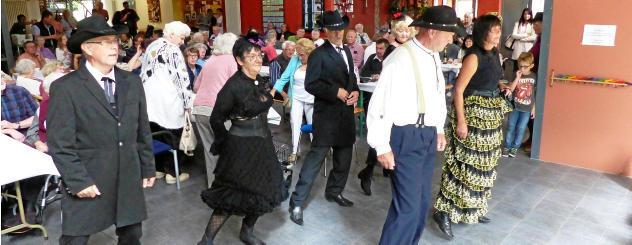 Etwas ganz Besonderes hatte sich die Einrichtungsleitung einfallen lassen, die mit einer Tanzgruppe aufgewartete. Einer nicht alltäglichen, wie die Senioren feststellen mussten. Bei ihr handelte es sich um die Gruppe Country-Dance-Family & Friends aus Rudolstadt, welche den amerikanischen Westerntanz mit der entsprechenden Anzugsordnung pflegt und popularisiert, was so manchen im Foyer ins Staunen versetzt hat.
