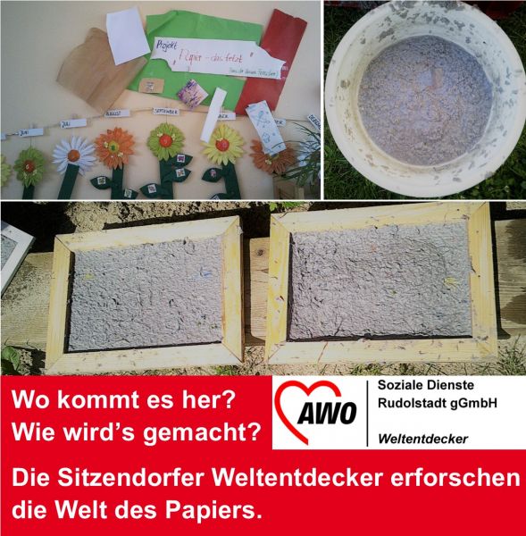 So wurde bei unseren Sitzendorfer Weltentdeckern im Rahmen des Projektes „Haus der kleinen Forscher“ gerade fleißig Papier gesammelt und genau untersucht. Die kleinen Forscher erfuhren, aus was Papier besteht und wie es hergestellt wird. Einzelne Kinder brachten sogar selbst gebaute Schöpfrahmen mit in den Kindergarten. Im Garten haben sie dann Papier in kleine Fetzen gerissen, im Wasser eingeweicht, mit dem Mixstab zerkleinert und die Pulpe auf den Rahmen geschöpft. Das hat einen riesen Spaß gemacht!
