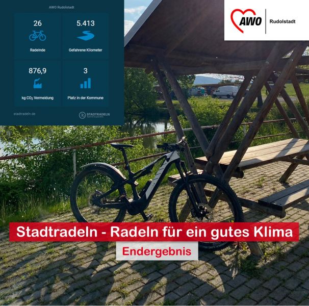 Mit insgesamt 5.413 zurückgelegten Kilometern und einer damit verbundenen CO² Einsparung von 876,9 kg belegt die Gruppe AWO Rudolstadt innerhalb der Kommune Platz 3. Das ist ein phänomenales Ergebnis. Gemeinsam mit der Friedrich-Adolf-Richter-Schule, die als separate Gruppe an den Start gegangen ist, konnten wir sogar insgesamt 12.112 Kilometer sammeln und somit 1.962 kg CO² vermeiden. Was für ein Ergebnis!! Vielen Dank an alle Teilnehmerinnen und Teilnehmer für das fleißige Kilometersammeln.