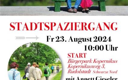 Am Freitag, den 23. August 2024, lädt der Seniorenbeirat Rudolstadt zu einem Stadtspaziergang durch das Neubaugebiet Schwarza-Nord ein. Treffpunkt ist um 10:00 Uhr im Bürgerpark Kopernikus. Wir wollen gemeinsam die Barrierefreiheit und Seniorentauglichkeit der Neubaugebiete erkunden und Verbesserungsvorschläge sammeln. Sei dabei und gestalte die Zukunft unserer Stadt mit!