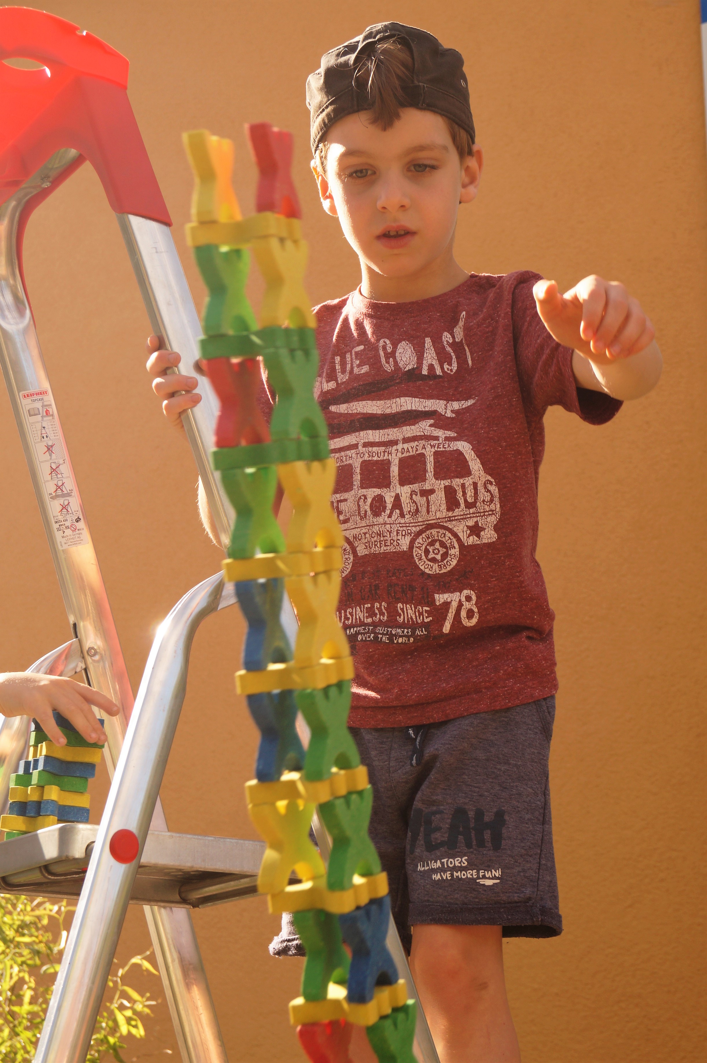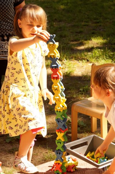 Die Vorschulkinder der Kindergärten "Feste Burg" und "Weltentdecker" zeigten ihre Künste im Umgang mit den Ankerstein X-Männchen. Vom Ehrgeiz gepackt stapelten sie die Steine mit voller Konzentration hoch hinaus und konnten Türme von über 1,20 m erreichen. War mal ein wackeliger Kandidat dabei, startete das Bauen sogelich erneut - vllt. klappt eine andere Bauweise besser?
