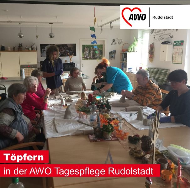 Ein beliebter Kurs in unserem Angebot fand vergangene Woche in unserer AWO Tagespflege Rudolstadt statt. Gemeinsam töpferten die Gäste der Tagespflege mit den Betreuerinnen und Betreuern und ließen ihrer Kreativität freien Lauf. Handwerkliche Tätigkeiten wie Töpfern bringen nicht nur Spaß, sondern bedienen zeitgleich mehrere Sinnesfunktionen, wobei Bewegungsabläufe durch das Modellieren mit Ton normalisiert und die visuelle sowie taktile Wahrnehmung verbessert werden können.