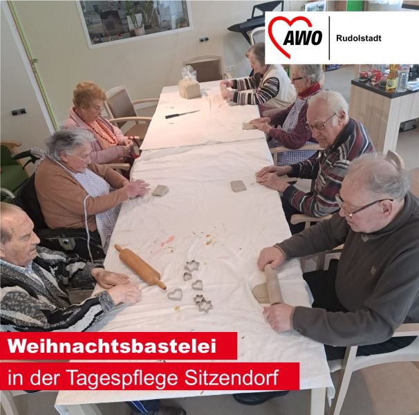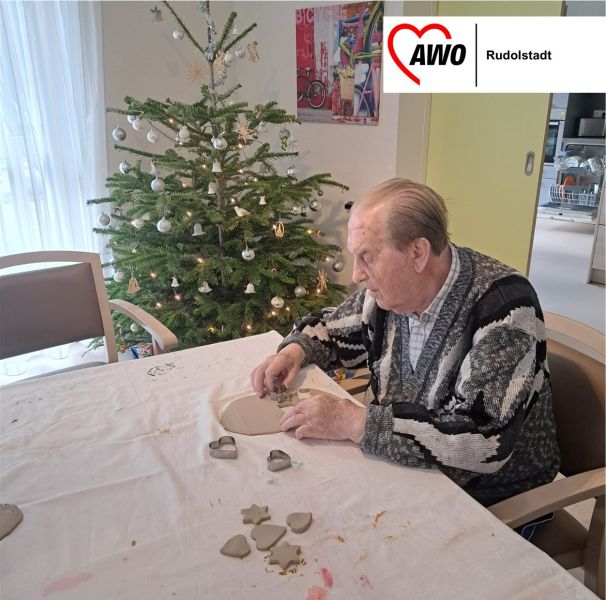 Auch in der AWO Tagespflege Sitzendorf läuft die Weihnachtsbastelei auf Hochtouren. Entstehen wird schöner individueller Weihnachtsbaumschmuck und farbenfrohe Geschenkeanhänger. Im 1. Schritt werden diese aus Ton gestochen oder geformt. Nun muss der Ton trocknen, um dann gebrannt zu werden bevor er schön angemalt wird und schlussendlich zum 2. Brennen geht. Schöne Weihnachtsmusik im Hintergrund und das passende Ambiente stimmen dabei sowohl die Gäste als auch die Mitarbeiterinnen in die Weihnachtszeit ein.