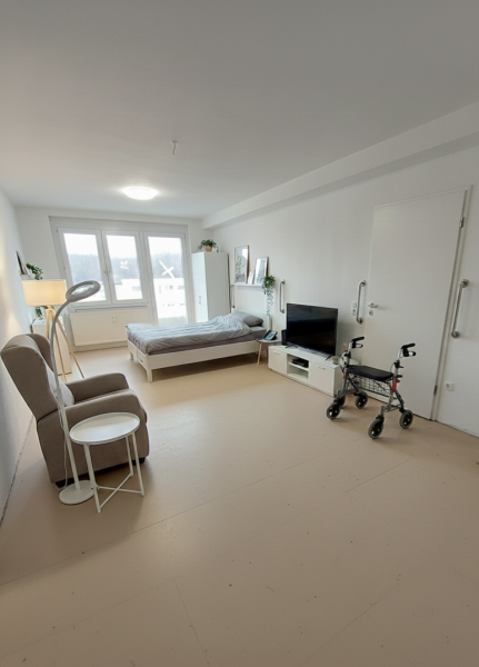 Es erwarten Sie 11 frisch renovierte Wohnungen im Erstbezug. Jedes private Zimmer (ca. 33 m²) verfügt über ein eigenes Bad mit ebenerdiger Dusche sowie einen Balkon und ist unmöbliert – ideal, um es mit den eigenen Lieblingsmöbeln individuell einzurichten. Ein großzügiger, voll ausgestatteter Gemeinschaftsraum mit integrierter Küche bildet das Herzstück der WG und lädt zum gemeinsamen Kochen und Verweilen ein, ergänzt durch einen weiteren gemütlichen Aufenthaltsraum.