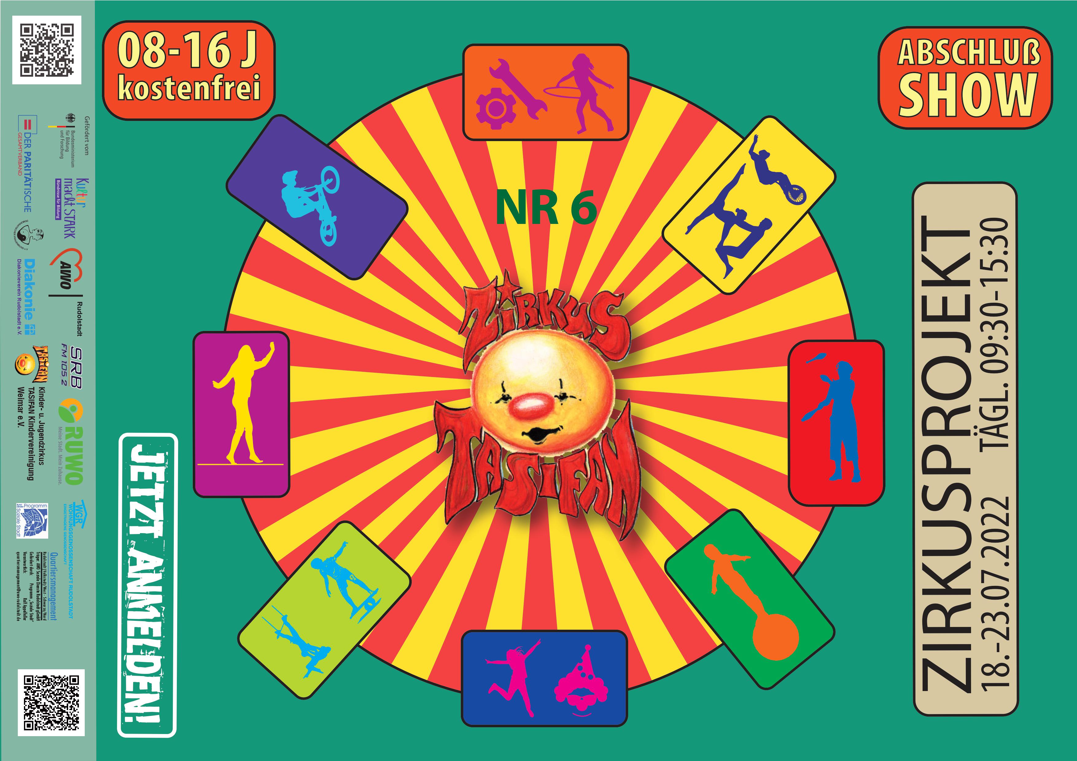 Unter dem Motto: Morgen wird heute, gestern sein – findet auch dieses Jahr wieder das Zirkusprojekt in dem Zeitraum vom 18. – 23.07.2022 statt. Insgesamt 100 Kinder zwischen 8-16 Jahren können sich bei 11 Workshops anmelden. Ganz neu ist wieder einmal eine Zirkuswerkstatt und ein BMX Workshop speziell für Kinder ab 12 Jahren. Dann nur zu! Anmeldeschluss ist am 15.07.2022.